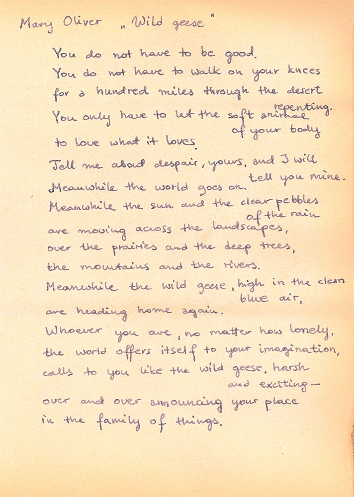 Love the LetterMo initiative! I enclose a poem that is currently very close to my heart. And a pressed leaf from a field elm tree from which the name of my town comes.