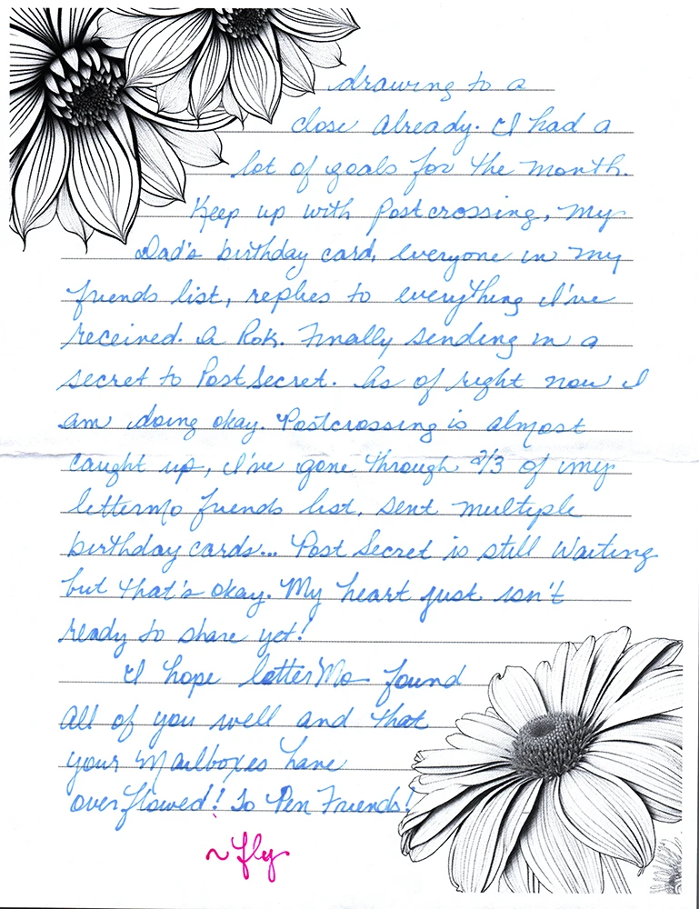 I hope that LetterMo found all of you well and that your mailboxes have overflowed! To Pen Friends!