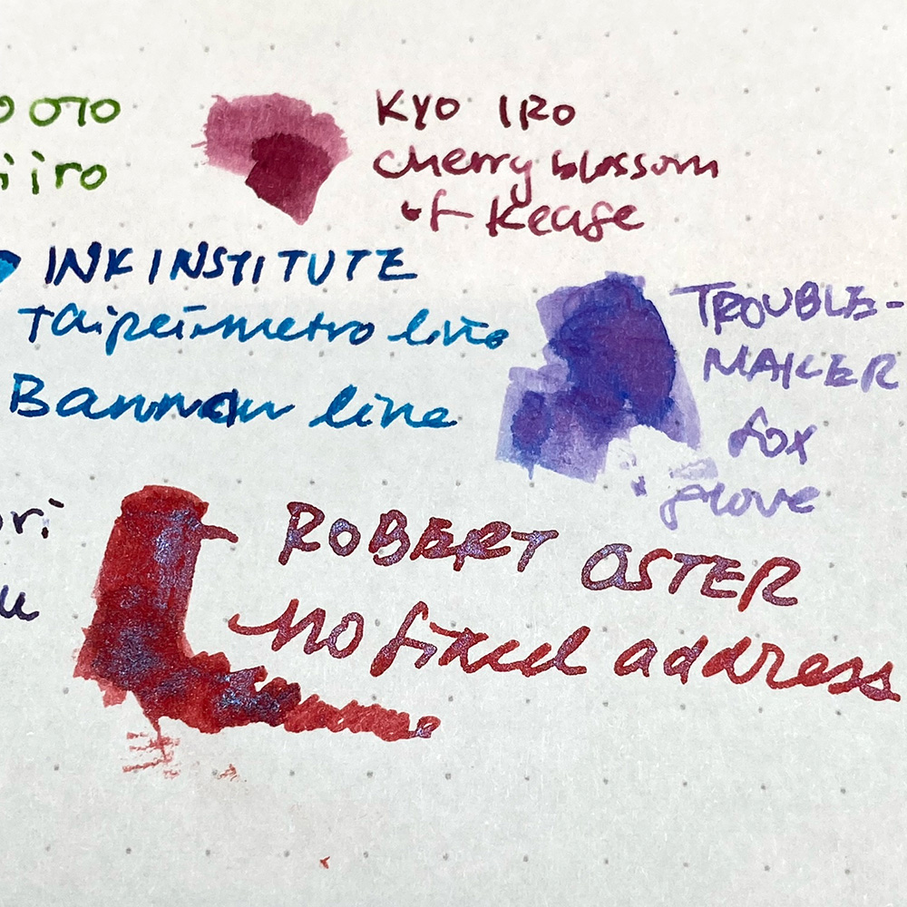 Shading ink – Troublemaker’s (yes, that’s the name of the brand) fox glove is a great example of a “combination colour” ink. The shading is more visible in broader nibs.